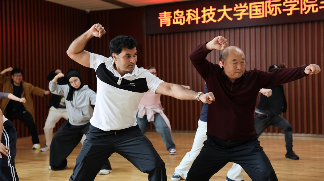 揭牌后,研学课程有序开展。在胶州市文化馆,师生系统参观并研习抖空竹、胶州大秧歌、三铺龙拳等国家级、省级非遗项目,在传承人示范指导下,近距离学习传统技艺要领,感受民间艺术与传统体育的文化内涵。随后,学生们依次开展传统拜师礼、投壶、射箭等六艺文化体验课程,沉浸式体悟中华礼仪文化的庄重与君子六艺的精神内核。整个研学过程以课程化、项目化方式系统推进,全程突出学习性、实践性、文化性,让留学生在学、观、练、悟中读懂中国文化精神,提升对中华优秀传统文化的认知。