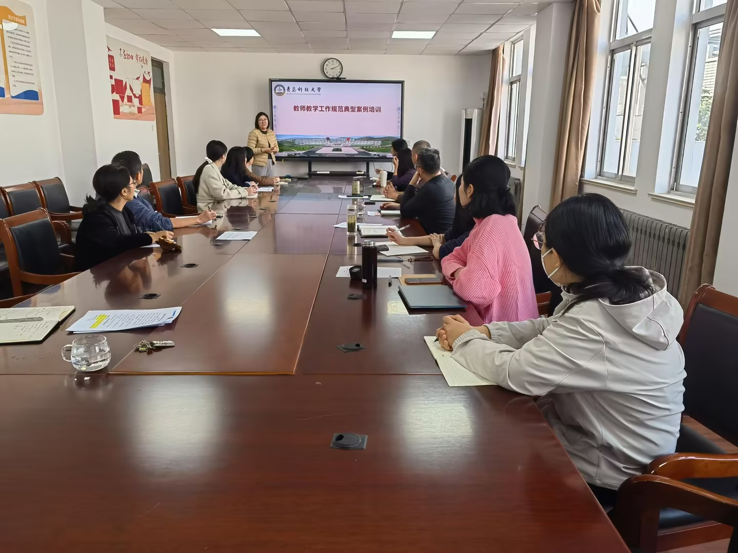 会上,全体教师集中学习《青岛科技大学教师教学工作规范(2022 修订)》等文件,结合学院教学案例,明确课程设计、课堂教学、考核等环节的规范要求。通过案例分析与交流,老师们深刻认识到规范教学的重要性。为避免教学事故,学院还明确强化监督措施,进一步加强领导干部、院级督导、辅导员、教学秘书的听课巡课,构建全方位监督体系,及时发现并解决教学问题,形成管理闭环。