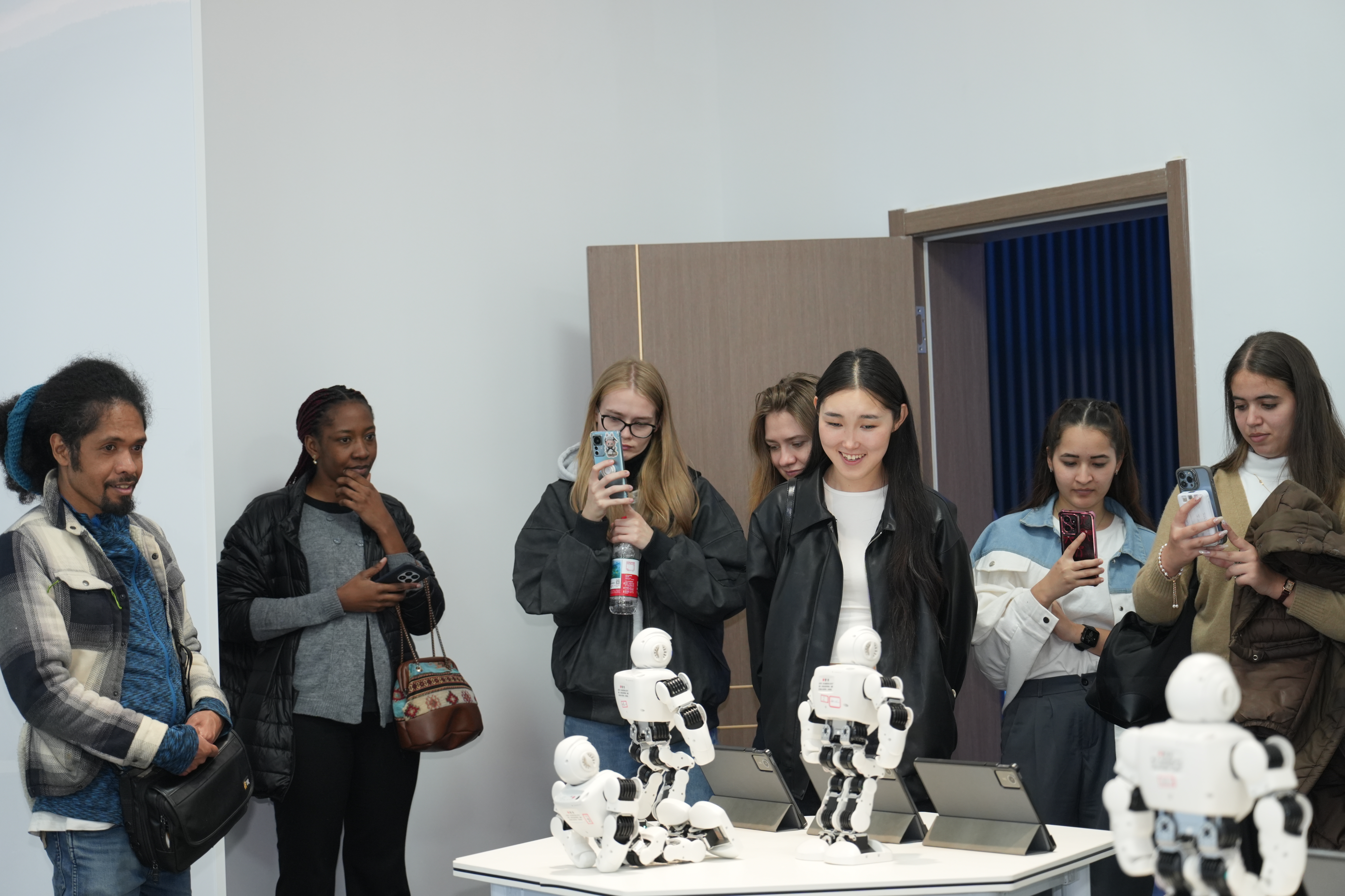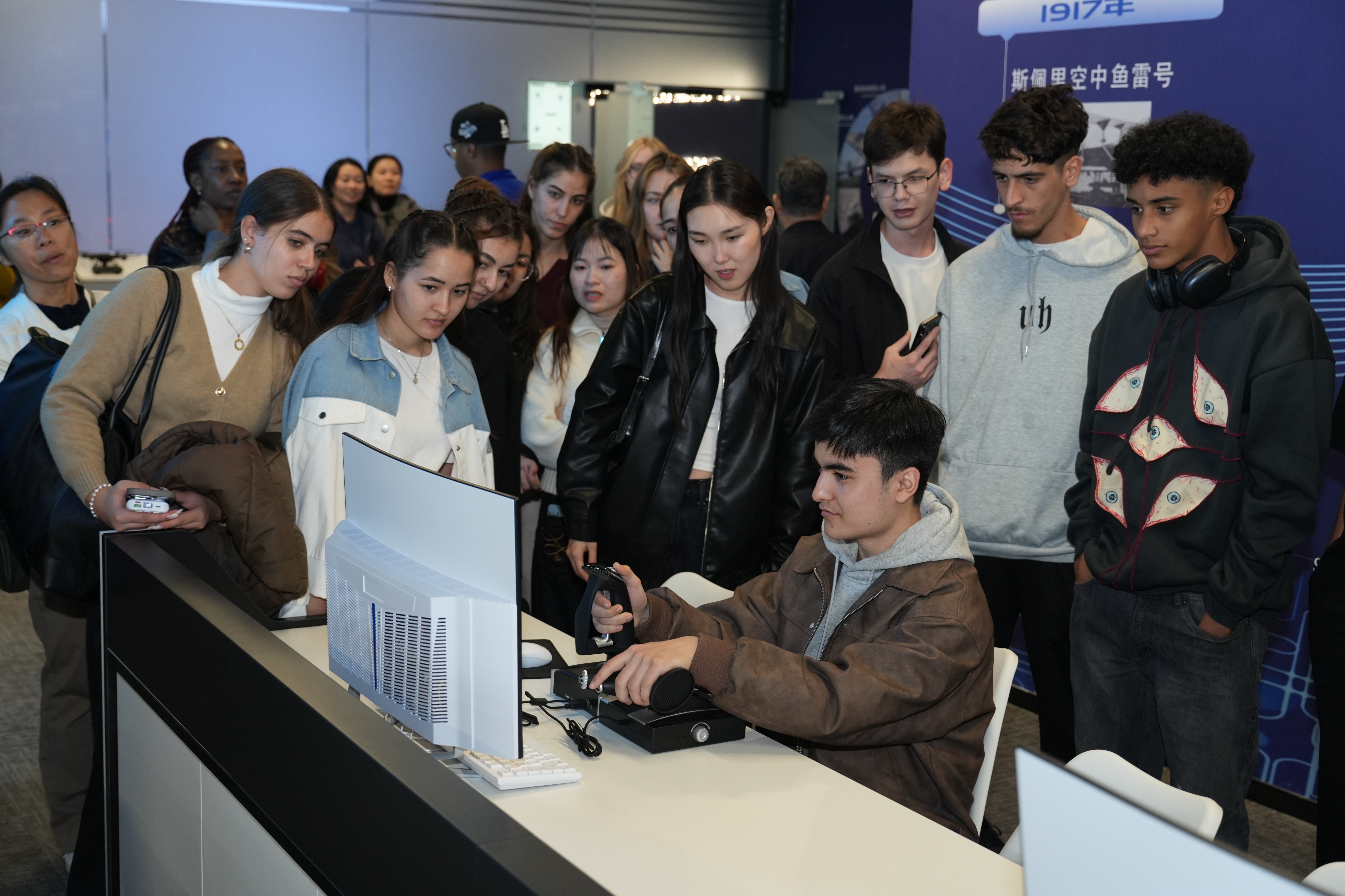 在半岛青少年人工智能创新教育实践基地,留学生们观摩了人工智能技术在教育中的实际应用,了解了中国在科技创新与教育融合方面的发展现状。