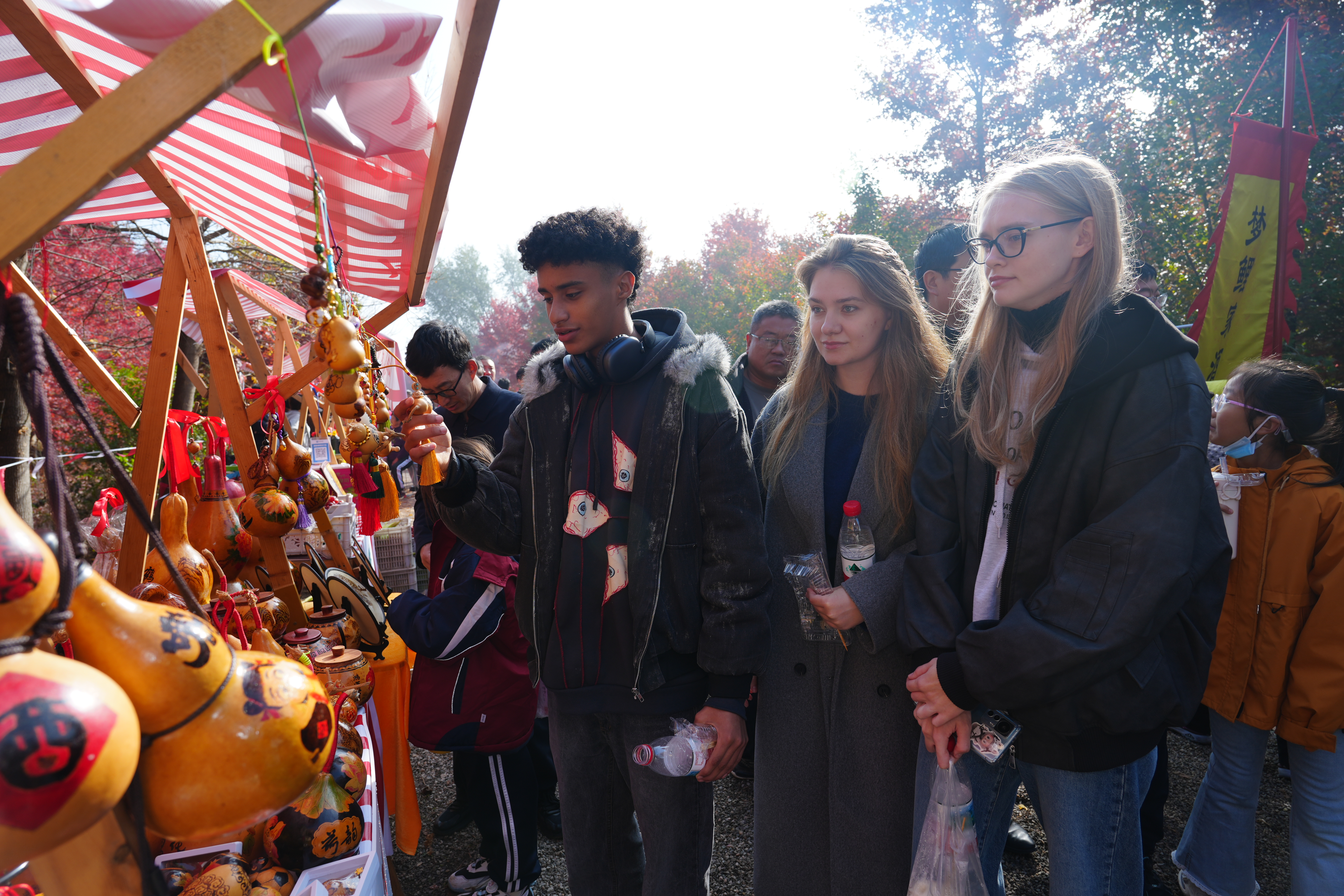 为增进对中国日常生活的了解,学生们还参与了包饺子和苹果采摘等实践环节,这些活动展示了中国饮食文化与现代农业、休闲旅游相结合的发展模式。此外,大家还走进夏格庄镇红枫林景区,通过古风摄影、地方美食品尝以及传统书画艺术鉴赏等活动,领悟中国乡村振兴战略下生态保护与传统文化传承的有机结合,领略新时代中国乡村的魅力。来自越南的学生阮梅红谈道:“这是我第一次来到中国的农村地区,之前我就知道中国农村在发展,但亲眼看到这里的乡村将旅游、生态和文化结合得这么好,还是超出了我的预期。”